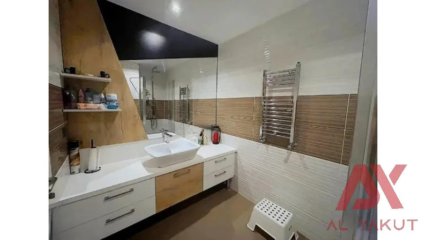 165 m² net, 180 m² brüt kullanım alanına sahip daire; ferah salonu, kapalı mutfağı ve kullanışlı oda planıyla aile yaşamına uygundur.